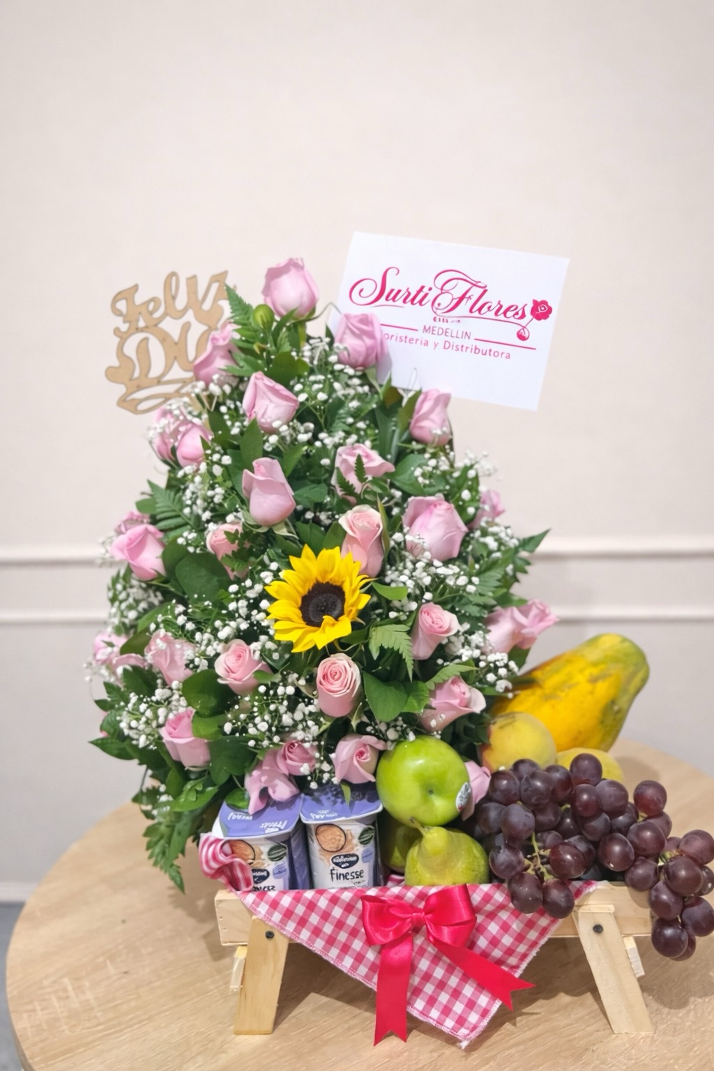 Desayuno sorpresa frutal con rosas